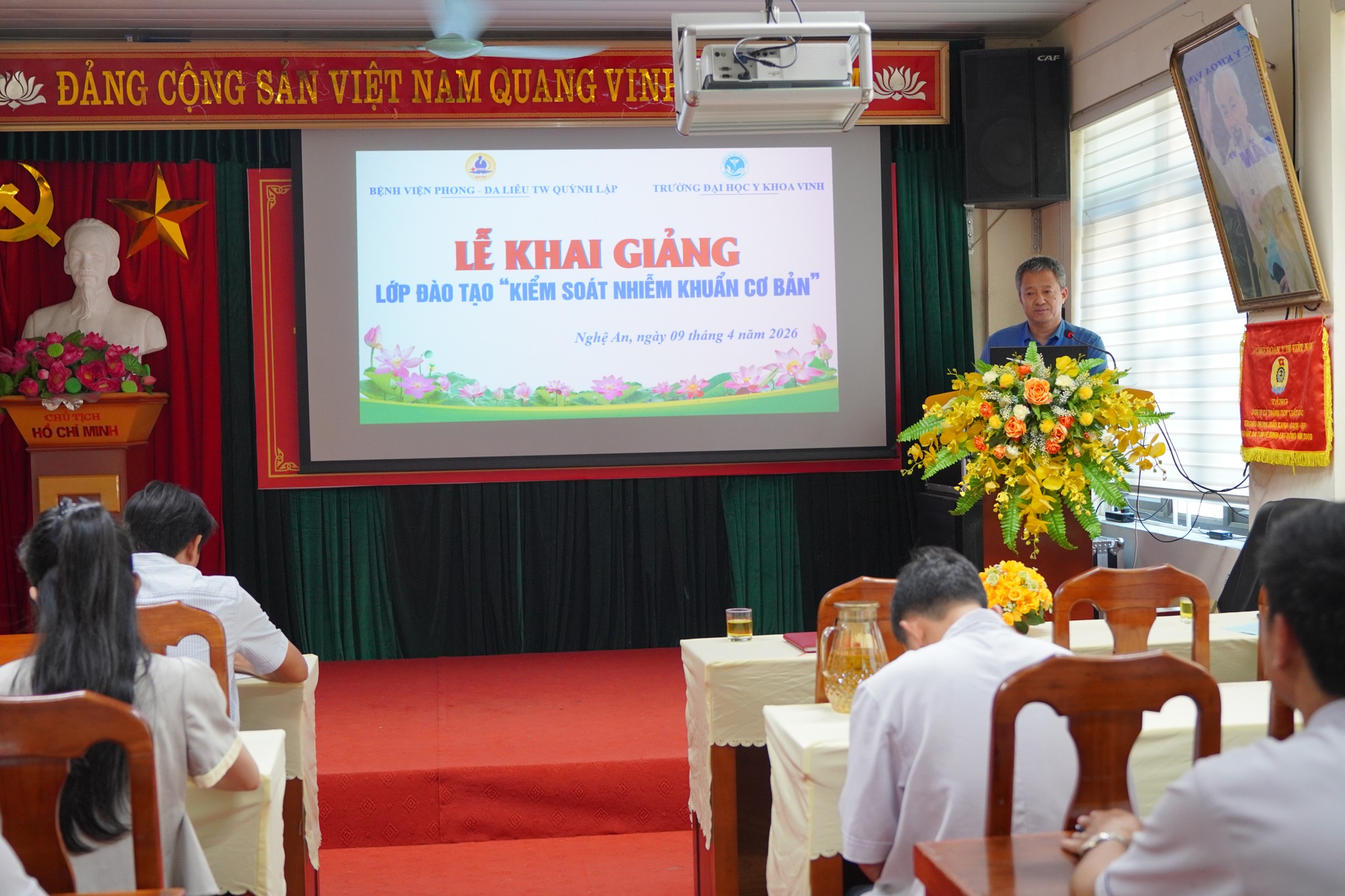 Sáng ngày 9/4/2026, trong không khí trang trọng và đầy ý nghĩa, Bệnh viện đã tổ chức lễ khai giảng lớp đào tạo “Kiểm soát nhiễm khuẩn cơ bản” dành cho đội ngũ y bác sĩ đang công tác tại các khoa lâm sàng và cận lâm sàng. Đây là hoạt động chuyên môn thiết thực, thể hiện sự quan tâm sâu sắc của Bệnh viện đối với công tác nâng cao chất lượng nguồn nhân lực y tế trong giai đoạn hiện nay.